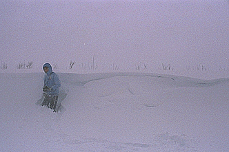 13日からの吹雪が人の背丈程の吹きだまりを作った。