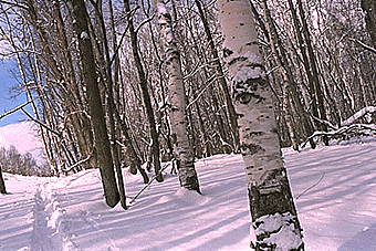 連日の雪でスキーを履いていても、膝までラッセルだった。