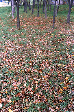 今日の雨で、一斉に枯葉が落ち てしまった。