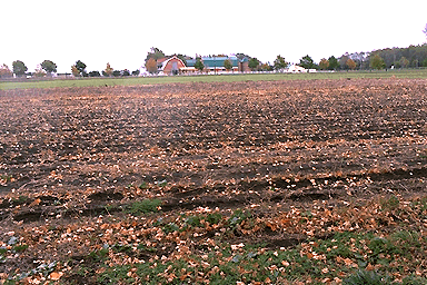 収穫が終わった畑に、枯葉が 舞い込んでいる。
