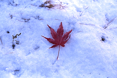 雪に覆われた畑の真ん中に、 もみじの葉が運ばれてきた。