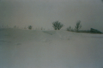 昨日の夕焼けとは打って変わって、 ものすごい吹雪になった。