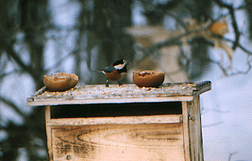 これからの季節は、この餌台に たくさんの鳥が集まる。