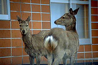 エゾシカが民家の庭先まで餌を探しに来た 山にはもう食べ物がないのだろう。