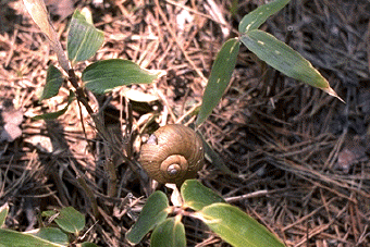 どこから来たのか、カタツムリ。この冬をどうやって 超してきたのだろう。
