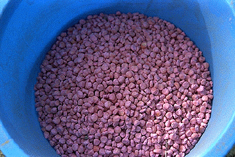 そろそろ種まきが始まる。これは、牛 のえさになる。デントコーンのたねだよ。 病気にならないようにピンクの薬がつい ている。