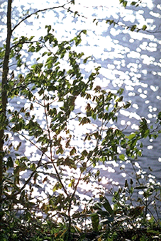 西岡水源地に夏の日差しが輝く。
