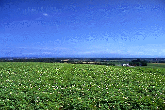 7/10 8/20 じゃがいもの花は、さんさんと太陽の 光を浴びて輝いている。きっと今年は、 豊作になるだろう。