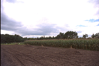 9月28日 晴れ 19.4℃ 9/25 デントコーン畑の隣では、じゃがいもの 収穫が終った。こんもりと盛り上がった土 の下には、収穫したじゃがいもがあります。 土の天辺にワラを挿し、じゃがいもの余分 な水分を取り去ります。