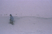 13日からの吹雪が人の背丈程の吹きだまりを作った。