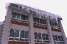 軒先の氷が今にも落ちそう。