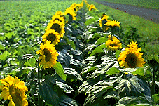 ひまわりは、花がさくまでは、 毎日太陽を追っかけてぐるぐると まわるから、日回りと言うんだよ。